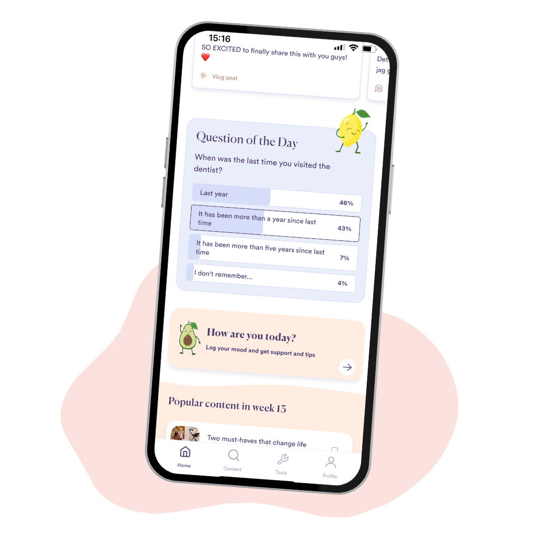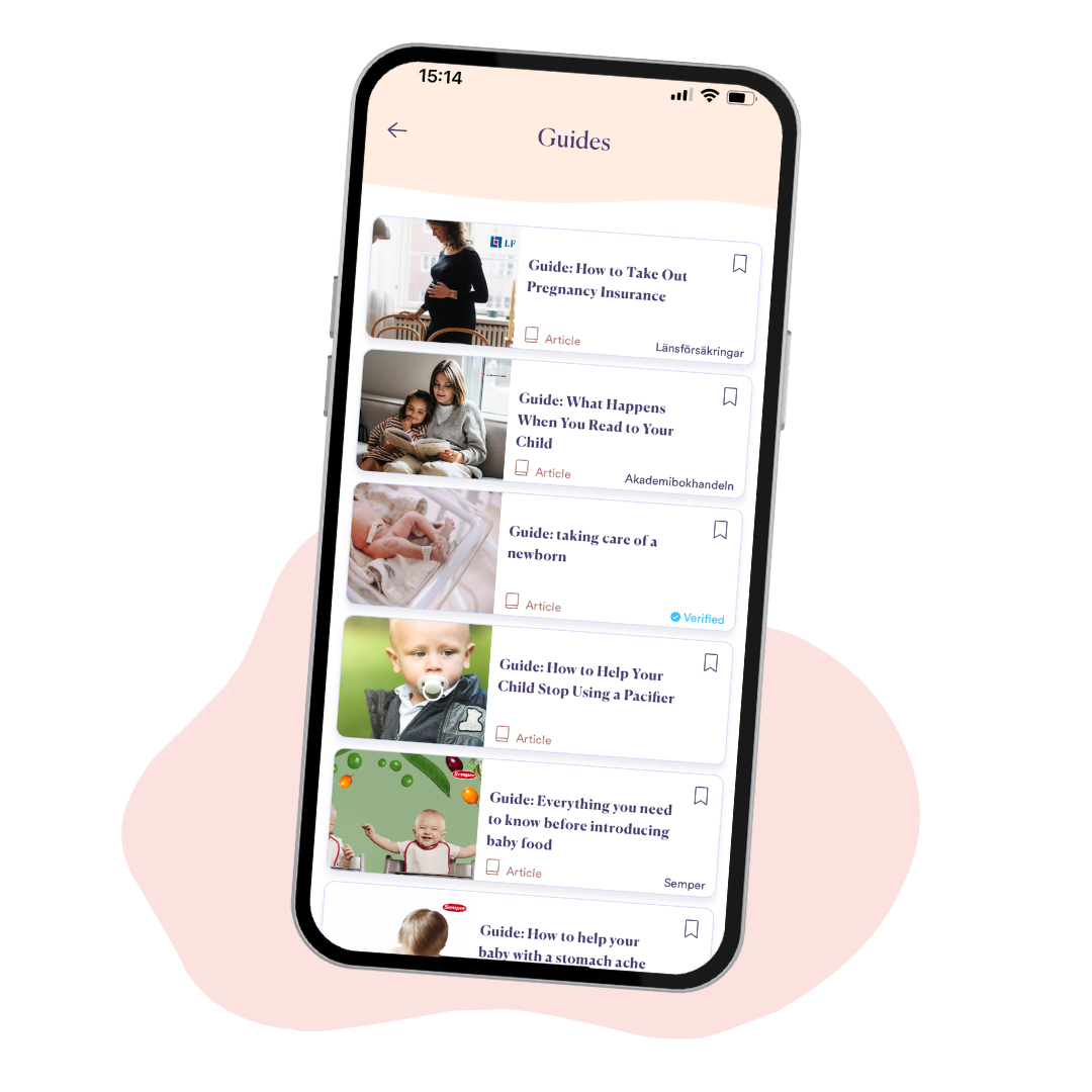 In the app you’ll find lots of guides covering everything from pregnancy, childbirth and the early days with baby. With the help of healthcare professionals, we have gathered valuable information and practical advice for both parents-to-be and new parents. With simple step-by-step guides and insights on baby development, you’ll find everything you need to know.