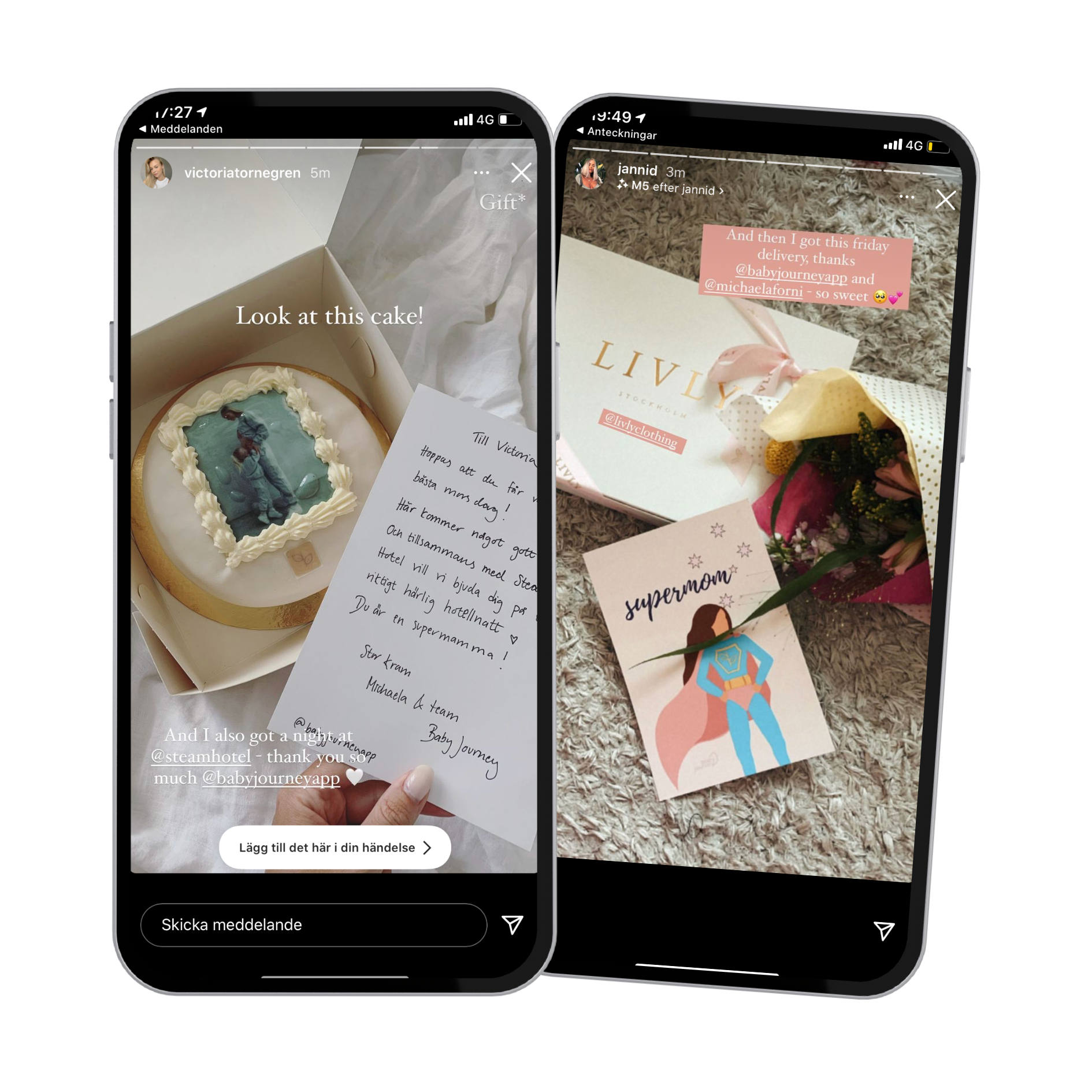 Here, our experts at Baby Journey play a significant role because we not only know which influencers our users follow and like, but also understand which influencers would have a need for your products themselves. When an influencer receives an offer or message about you and your brand that they like or appreciate, it naturally generates exposure in their channels – exposure that your target audience then engages with. It becomes a win-win situation for everyone!